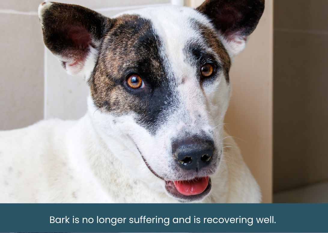 Bark now has a happier and healthier future ahead - free from the tumour that once compromised his breathing, and safe from infections and structural damage that could have been life-threatening.